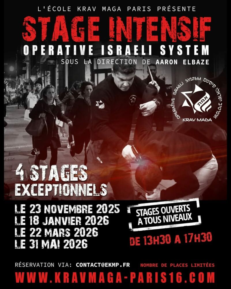 Ces stage sont dirigés par Aaron ELBAZE, développeur et instructeur chef du système OIS Operative Israeli System Emeth Krav Maga !